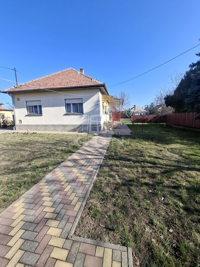 A szobák parkettásak, a többi helyiség járólappal burkolt. A fedett terasz kellemes pihenőhely lehet, a különálló garázs pedig kényelmes parkolást biztosít. A fűtésről gáz-cirkó gondoskodik.
