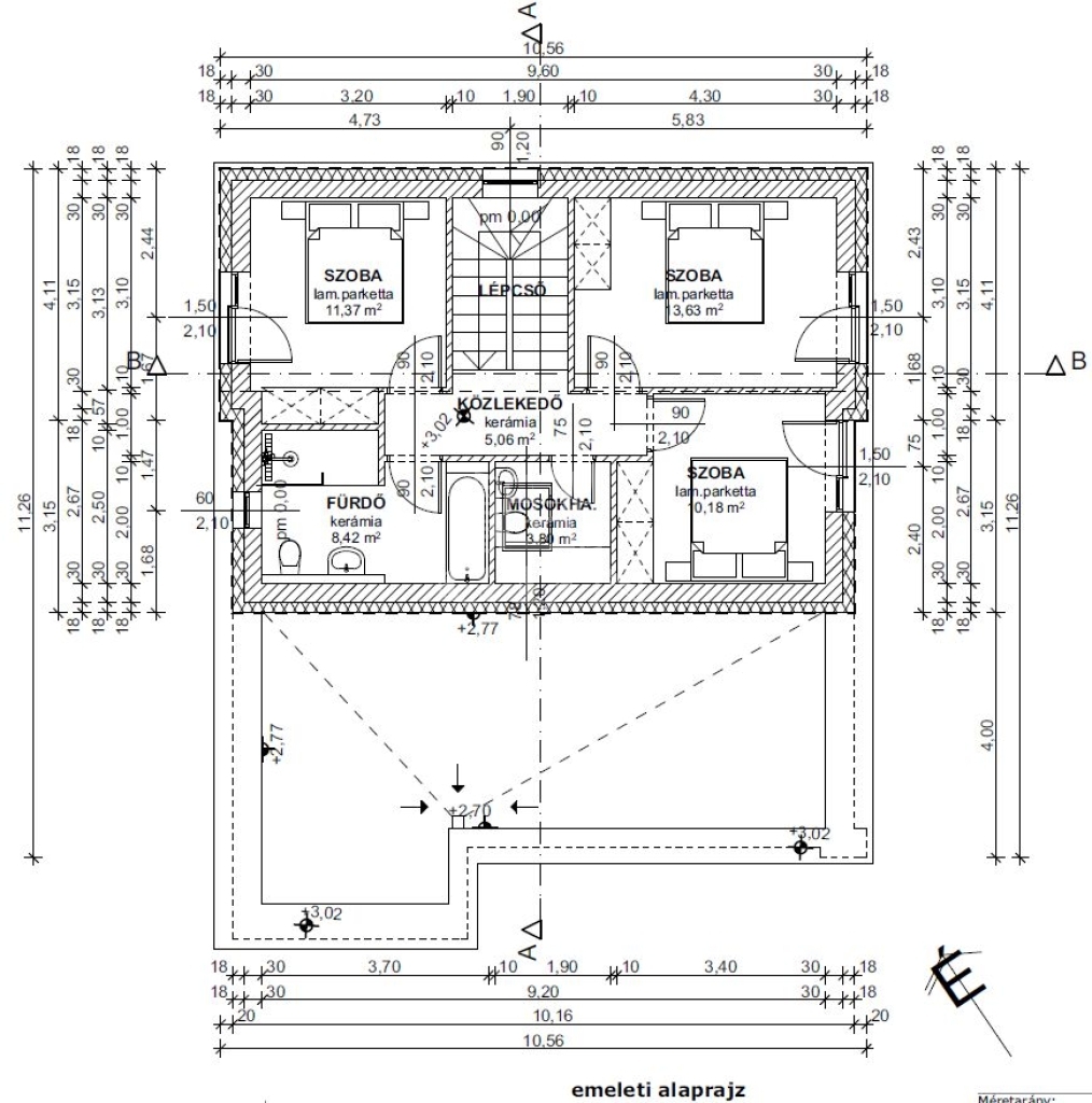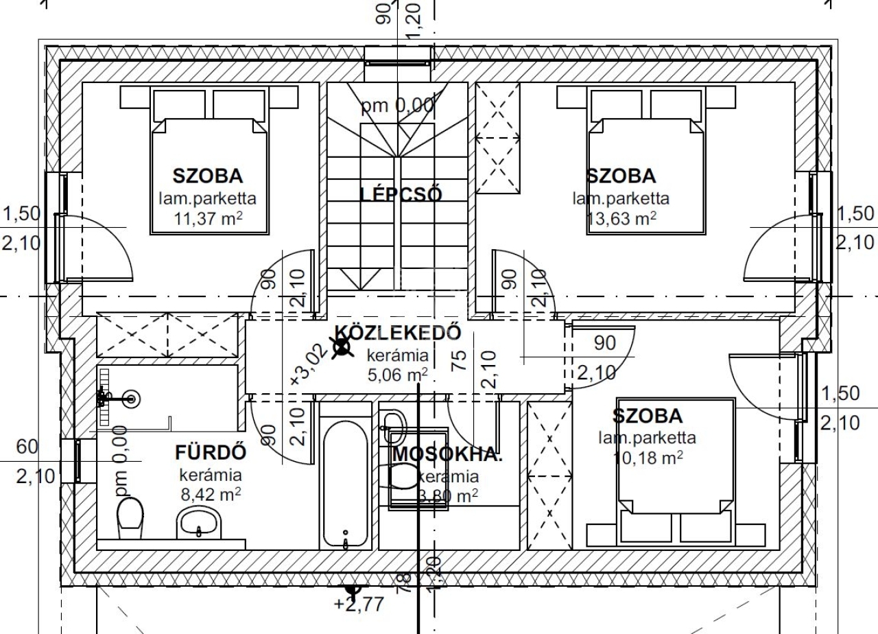 - Falazatok: külső-belső teherhordó falak: POROTHERM 30 X-Therm., belső válaszfal: POROTHERM 10 NF