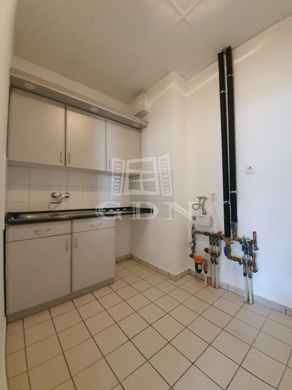 A hirdetésben szereplő iroda 79m2 alapterületű és az első emeleten található. A bérlemény elosztását tekintve egy tágas, egy-légterű irodahelyiségből, egy teakonyhából, valamint egy a folyosón található, sajáthasználatú mosdóból áll.