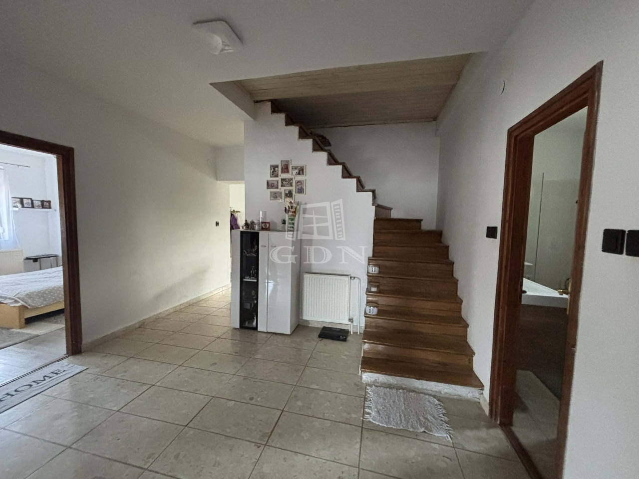 A 38-as porotherm téglából, épült, remek belső kialakítású ingatlan földszintjén amerikai konyhás nappali, 3 szoba, kamra, előszoba, fürdőszoba és wc került kialakításra. A teljes ház alatt szuterén van, ahol 2.70 a belmagasság. Kazánház, fatároló, konditerem és szauna található. Az összes közművel ellátott szint remek lehetőséget biztosít a kikapcsolódásra vagy vállalkozás céljára, sokoldalúan használható.