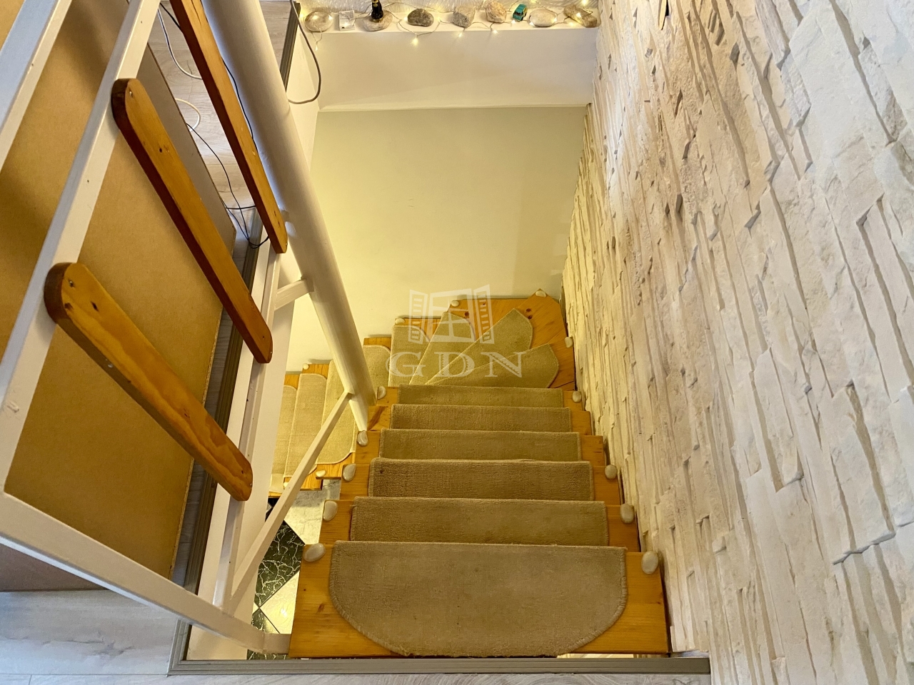 A középső szint a közösségi élet színtere, ahol egy tágas, világos nappali, egy hálószoba és egy fürdőszoba kapott helyet. A nappaliból közvetlen kijárás nyílik egy 7 négyzetméteres erkélyre, amely kellemes kilátást és további kikapcsolódási lehetőséget biztosít. A felső szinten két klimatizált szoba, egy fürdőszoba és a padlás feljárata található.